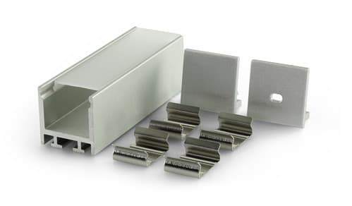 Il profilo illustrato è un componente. Il suo corretto funzionamento con nastri led o moduli led dipende da importanti requisiti di installazione e dimensionamento. La potenza dissipabile è stata calcolata considerando una temperatura ambiente non superiore a 35°C in aria. Condizioni di installazione differenti devono essere opportunamente verificate da personale tecnico. Utilizzare la copertura solo con nastri led IP20.