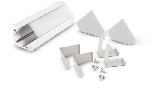 ALPHA ELETTRONICA - Profilo in alluminio verniciato bianco ad angolo con copertura in PMMA opaca piana - 2m - Accessori inclusi JO380/152B-32K