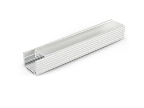 Il profilo illustrato è un componente. Il suo corretto funzionamento con nastri led o moduli led dipende da importanti requisiti di installazione e dimensionamento. La potenza dissipabile è stata calcolata considerando una temperatura ambiente non superiore a 35°C in aria. Condizioni di installazione differenti devono essere opportunamente verificate da personale tecnico. Utilizzare la copertura solo con nastri led IP20.