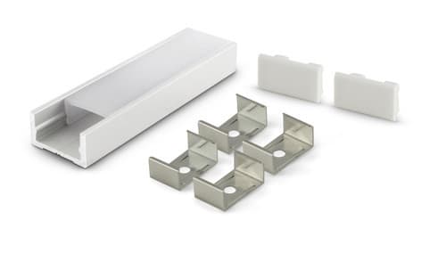 ALPHA ELETTRONICA - Profilo in alluminio verniciato bianco con copertura in PMMA opaca piana - 2m - Accessori inclusi JO380/084B-32K