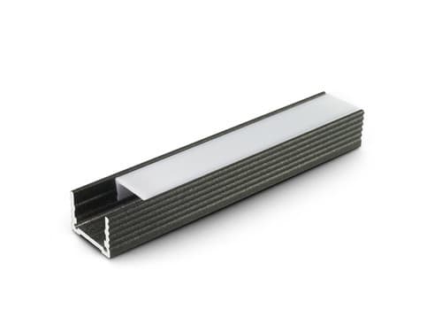 ALPHA ELETTRONICA - Profilo in alluminio verniciato nero con copertura in PC opaca piana - 2m JO380/086N-12P