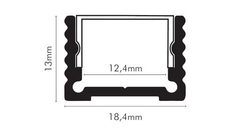 Il profilo illustrato è un componente. Il suo corretto funzionamento con nastri led o moduli led dipende da importanti requisiti di installazione e dimensionamento. La potenza dissipabile è stata calcolata considerando una temperatura ambiente non superiore a 35°C in aria. Condizioni di installazione differenti devono essere opportunamente verificate da personale tecnico. Utilizzare la copertura solo con nastri led IP20.