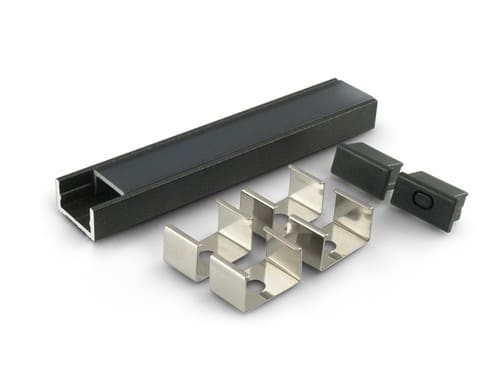 ALPHA ELETTRONICA - Profilo in alluminio verniciato nero con copertura in PMMA nera piana - 2m - Accessori inclusi JO380/084N-62K