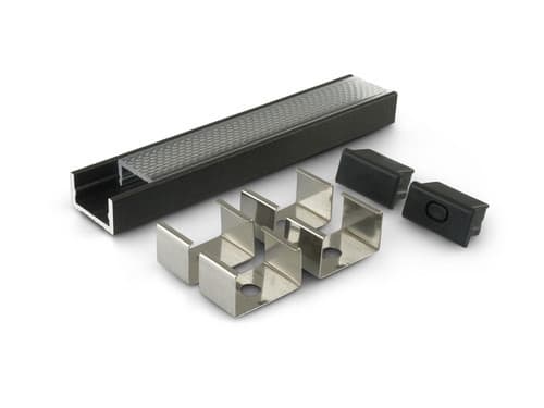 ALPHA ELETTRONICA - Profilo in alluminio verniciato nero con copertura prismata trasparente piana - 2m - Accessori inclusi JO380/084N-42K