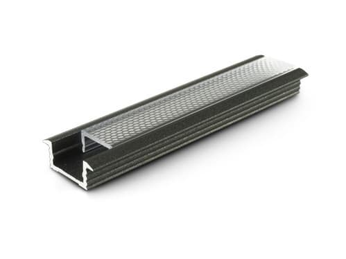 ALPHA ELETTRONICA - Profilo in alluminio verniciato nero da incasso con copertura prismata trasparente piana - 2m JO380/102N-42P