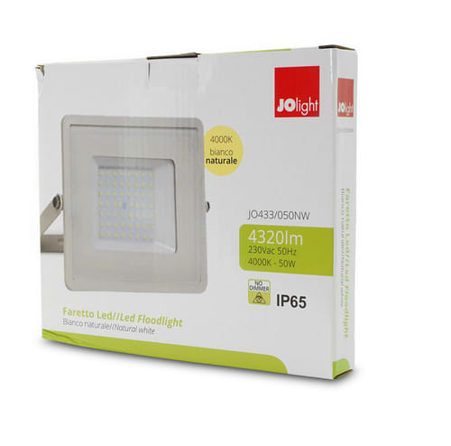 ALPHA ELETTRONICA - Proiettore Led Ultra Slim 50W - 230Vac - Bianco caldo - Corpo bianco - Serie Clear