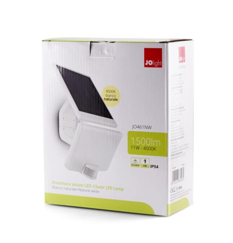 ALPHA ELETTRONICA - Proiettore solare Led 11W - Con sensore PIR - Ricaricabile - Bianco naturale - Serie Solarte JO461NW