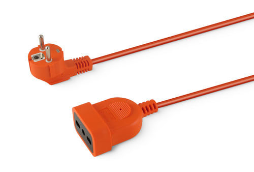 ALPHA ELETTRONICA - Prolunga da spina 3 poli tedesca a presa Italia Bipasso - 10m - cavo arancione 23-003/10KIB