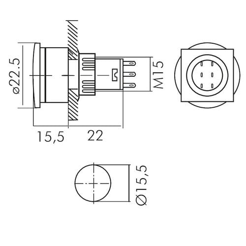 Foro fissaggio: ø15.5mm
