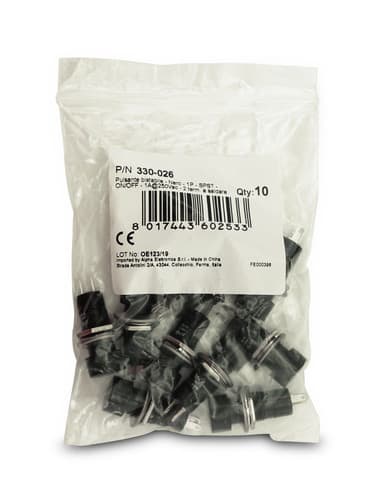 ALPHA ELETTRONICA - Pulsante bistabile - Nero - 1P - SPST - ON/OFF - 1A@250Vac - 2 term. a saldare 330-026