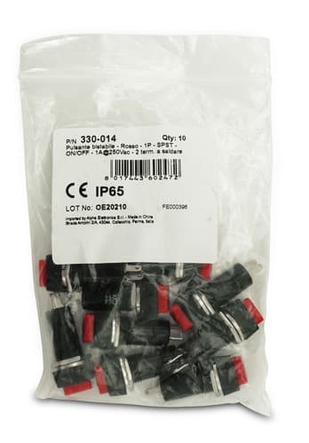 ALPHA ELETTRONICA - Pulsante bistabile - Rosso - 1P - SPST - ON/OFF - 1A@250Vac - 2 term. a saldare 330-014