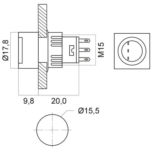 Foro fissaggio: ø15.5mm