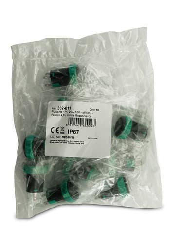 ALPHA ELETTRONICA - Pulsante luminoso - Nero - 1P - SPST - OFF/(ON) - N.A. - 3 term. faston 4,8 332-011