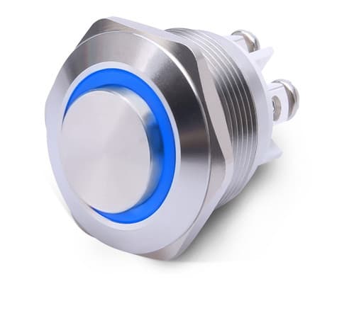 ALPHA ELETTRONICA - Pulsante momentaneo antivandalo ø16mm luminoso Blu 12V - 1P - SPST - OFF/(ON) - N.A. - 3 term. vite 330-058-5