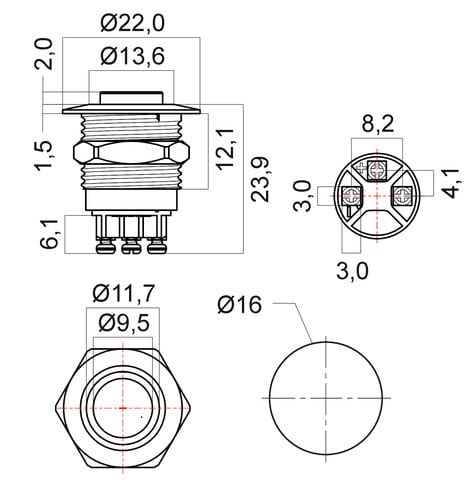 • diametro del foro - 16 mm