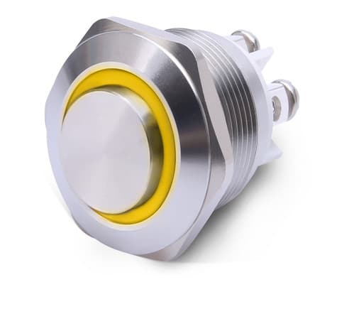 ALPHA ELETTRONICA - Pulsante momentaneo antivandalo ø16mm luminoso Giallo 12V - 1P - SPST - OFF/(ON) - N.A. - 3 term. vite 330-058-3