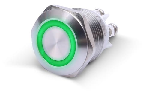 ALPHA ELETTRONICA - Pulsante momentaneo antivandalo ø19mm luminoso Verde - 24V - 1P - SPST - OFF/(ON) - N.A. - 5A@250Vac - 4 term. vite 330-060-4