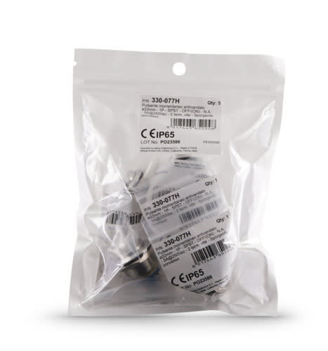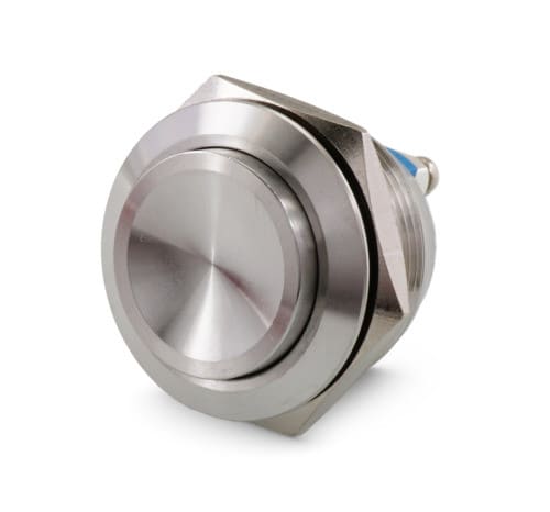 ALPHA ELETTRONICA - Pulsante momentaneo antivandalo ø22mm - 1P - SPST - OFF/(ON) - N.A. - 5A@250Vac - 2 term. vite - Sporgente convesso 330-077H