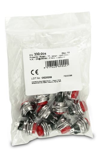 ALPHA ELETTRONICA - Pulsante - Rosso - 1P - SPST - OFF/(ON) - N.A. - 2A@250Vac - 2 term. a saldare 330-008