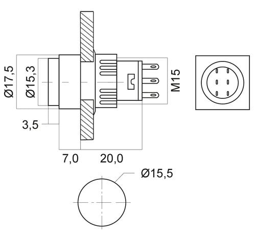 Foro fissaggio: ø15.5mm