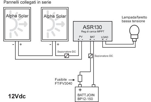 ALPHA ELETTRONICA - Regolatore di carica MPPT 30A - 12/24Vdc - Input 60V - per impianto fotovoltaico ASR130