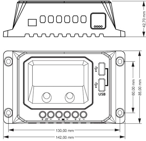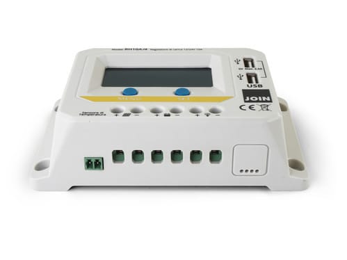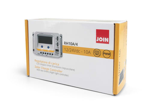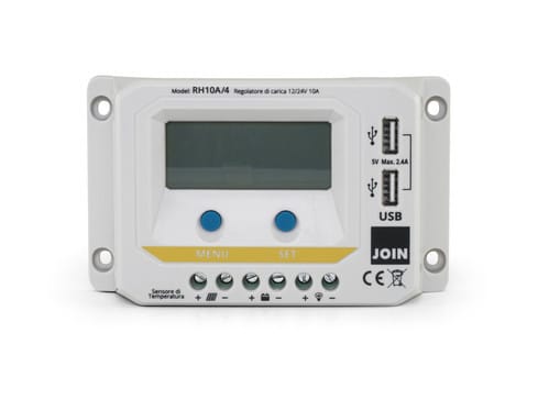 ALPHA ELETTRONICA - Regolatore di carica PWM 12/24V 10A con display, uscita USB 5V e crepuscolare configurabile - per impianto fotovoltaico RH10A/4