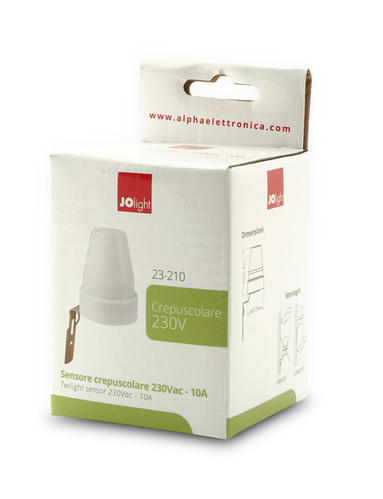 ALPHA ELETTRONICA - Sensore crepuscolare 230Vac - 10A - IP44 - Soglia luminosità ambiente regolabile 23-210