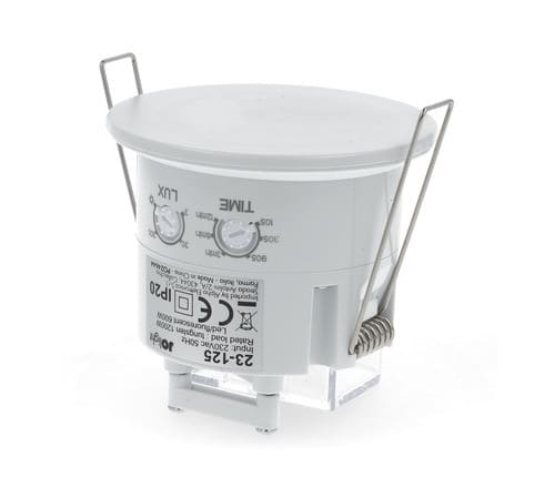 Rilevatore di presenza JOlight 23-125 ad alta frequenza ideale per vani scala, servizi igienici con cabine WC, spogliatoi, parcheggi al coperto e cucine.