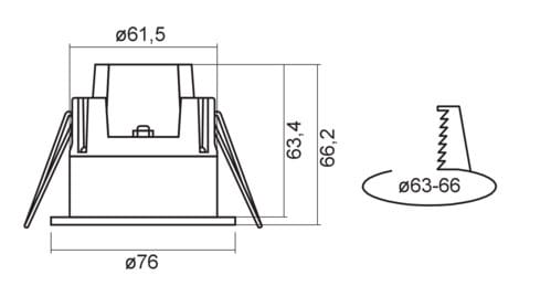 Dimensioni (LxWxH): 76 x 76 x 66.2mm