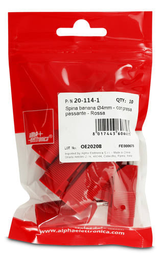 ALPHA ELETTRONICA - Spina banana ø4mm - con presa passante - Rossa 20-114-1