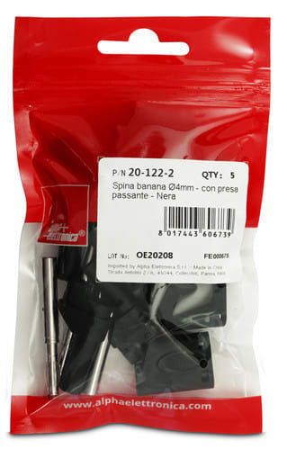 ALPHA ELETTRONICA - Spina banana ø4mm di sicurezza - con presa passante - Nera 20-122-2