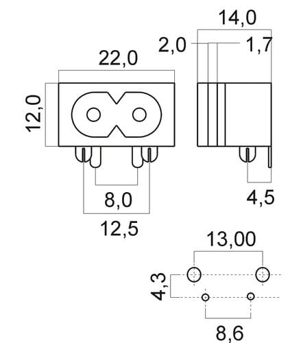 ALPHA ELETTRONICA - Spina di alimentazione AC da circuito stampato - C8 23-16