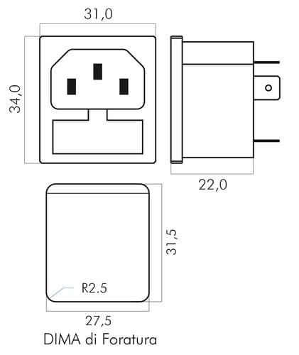 ALPHA ELETTRONICA - Spina di alimentazione AC da pannello ad innesto - C14 - Con portafusibile 23-6/1