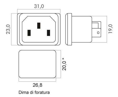 ALPHA ELETTRONICA - Spina di alimentazione AC da pannello ad innesto - C14 - Faston 6,3mm 23-5/3