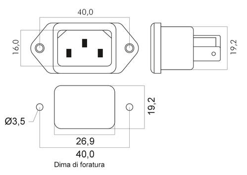 ALPHA ELETTRONICA - Spina di alimentazione AC da pannello con fissaggio a vite - C14 23-5/2