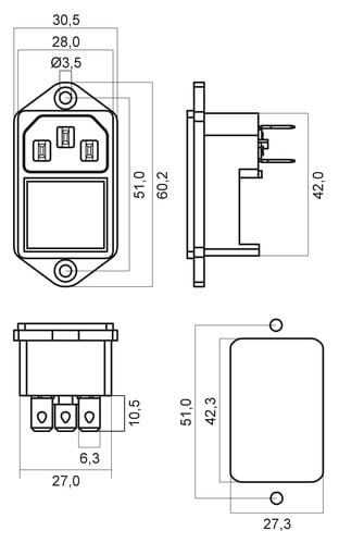 ALPHA ELETTRONICA - Spina di alimentazione AC da pannello con fissaggio a vite - C14 - Con interruttore 23-12/5