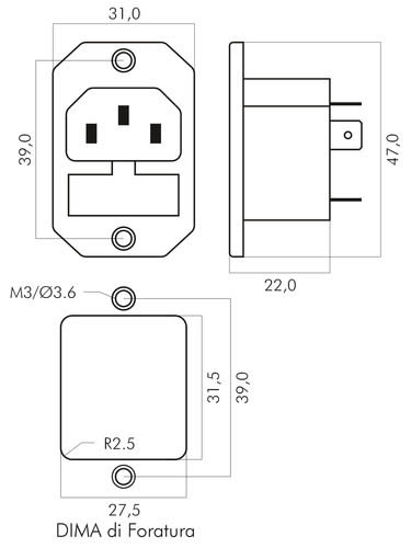 ALPHA ELETTRONICA - Spina di alimentazione AC da pannello con fissaggio a vite - C14 - Con portafusibile 23-6