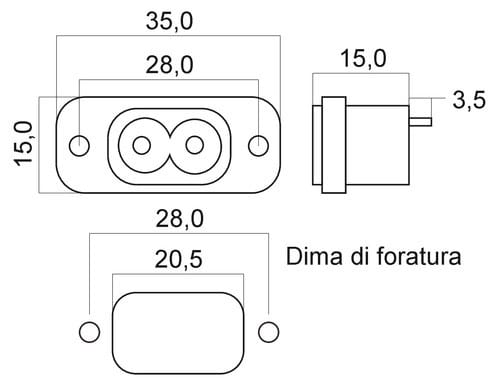 ALPHA ELETTRONICA - Spina di alimentazione AC da pannello con fissaggio a vite - C8 23-17/2