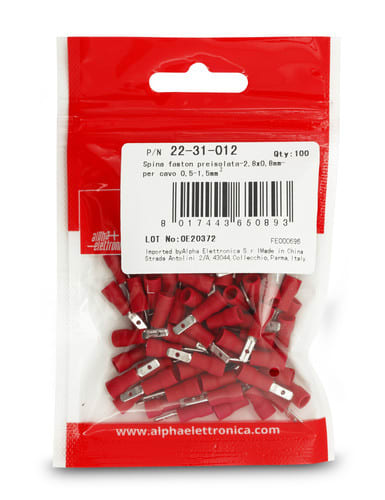 ALPHA ELETTRONICA - Spina faston preisolata - 2,8x0,8mm - per cavo 0,5-1,5mm² 22-31-012