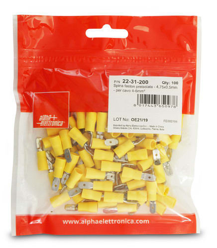 ALPHA ELETTRONICA - Spina faston preisolata - 4,75x0,5mm - per cavo 4-6mm²