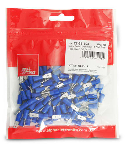 ALPHA ELETTRONICA - Spina faston preisolata - 4,75x0,8mm - per cavo 1,5-2,5mm² 22-31-108