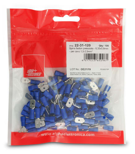 ALPHA ELETTRONICA - Spina faston preisolata - 6,35x0,8mm - per cavo 1,5-2,5mm² 22-31-120