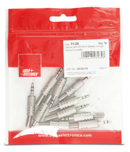 ALPHA ELETTRONICA - Spina jack ø3,5mm Stereo con guidacavo a molla 11-26