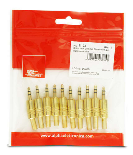 ALPHA ELETTRONICA - Spina jack ø3,5mm Stereo con guidacavo a molla 11-28
