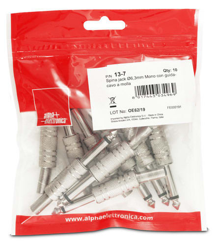 ALPHA ELETTRONICA - Spina jack Ø6,3mm Mono con guidacavo a molla 13-7