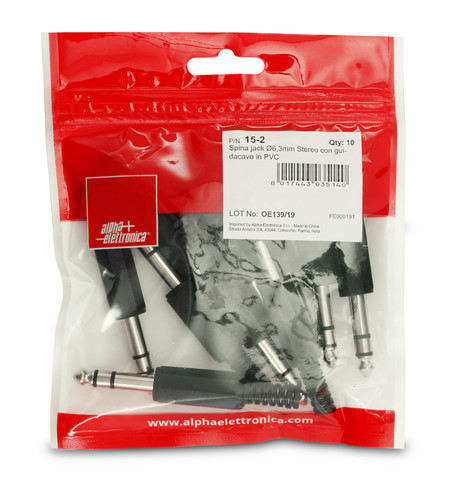 ALPHA ELETTRONICA - Spina jack Ø6,3mm Stereo con guidacavo in PVC 15-2