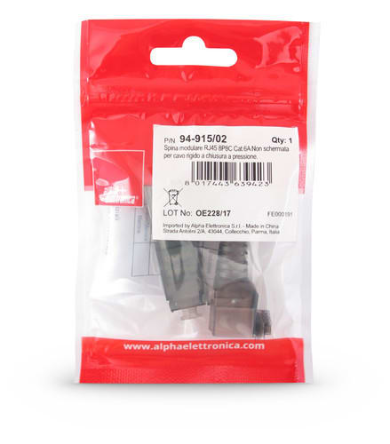 ALPHA ELETTRONICA - Spina modulare RJ45 8P8C Cat.6A Non schermata - Contatti dorati - Per cavo rigido e flessibile - Chiusura a pressione 94-915/02