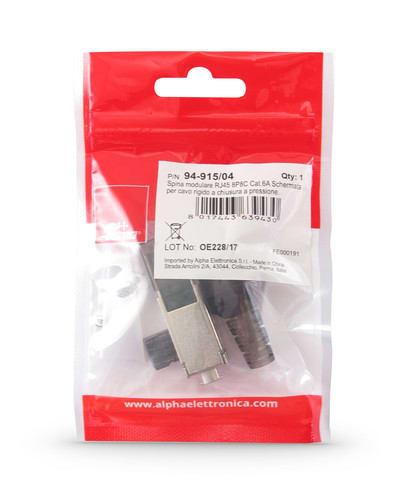 ALPHA ELETTRONICA - Spina modulare RJ45 8P8C Cat.6A Schermata - Contatti dorati - Per cavo rigido e flessibile - Chiusura a pressione 94-915/04