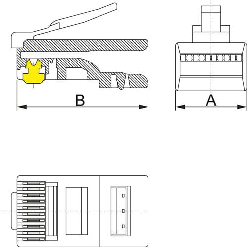 ALPHA ELETTRONICA - Spina modulare RJ48/RJ50 10P10C per cavo flessibile - Contatti dorati 94-319