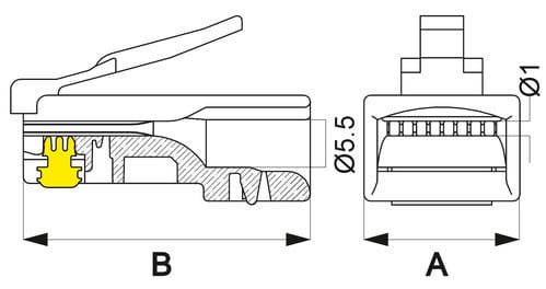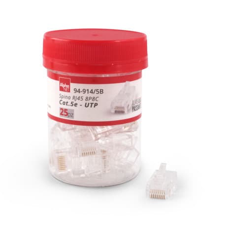 ALPHA ELETTRONICA - Spina RJ45 8P8C Cat.5e UTP AWG24-26 Passante - Contatti dorati 94-914/5B